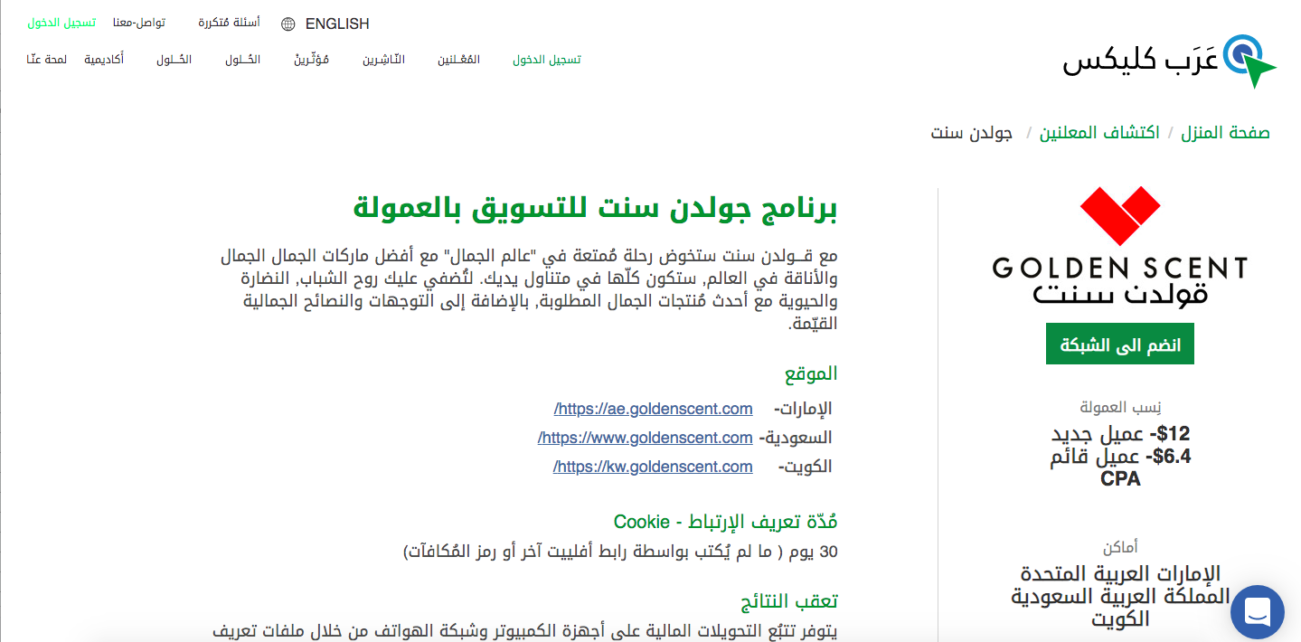التسويق بالعمولة مع قولدن سنت مع عرب كليكس